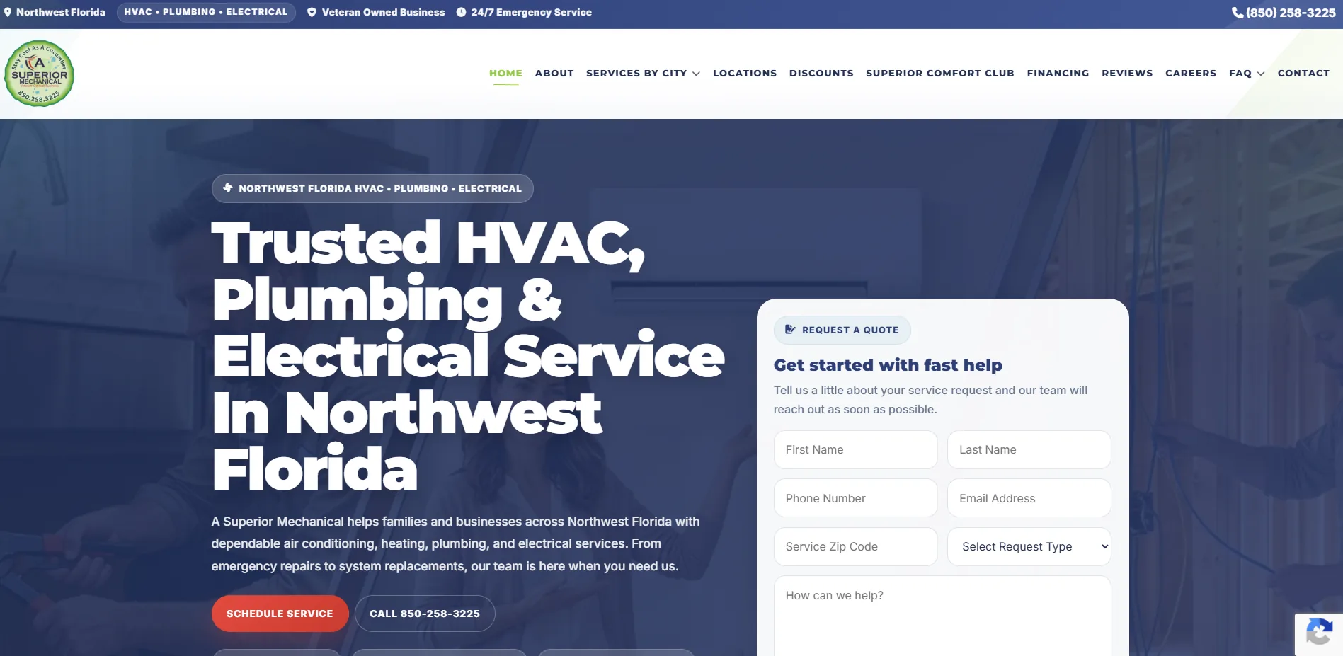 A Superior Mechanical came to me needing more than just a visual refresh. They needed a complete reset. As an HVAC, plumbing, and electrical company serving Northwest Florida through three locations, they rely heavily on local visibility, trust, and steady lead flow. Their old website was working against them instead of for them. It was built on WordPress using a cheap template, it had security issues, and most importantly, it was not converting visitors into real calls and jobs.